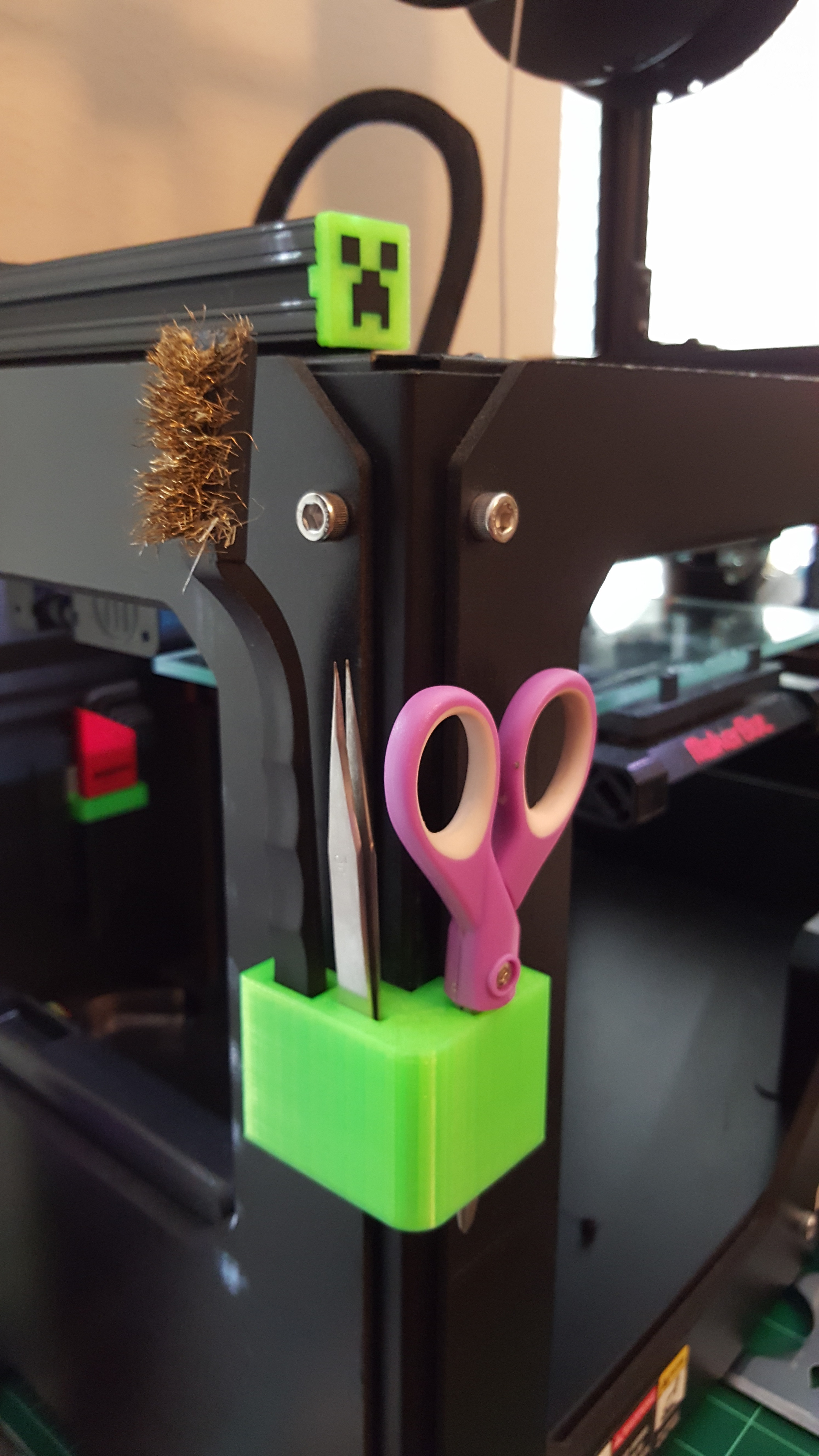 It’s not the most exciting print, but I would have to say it has been extremely useful. I designed my own tool holder to hold my tweezers, wire brush, and scissors on the side of my Replicator 2. You can also see the tool holder in the background that holds my set of hex wrenches. I would also have to rate the 3D printed parts in my custom designed filament stand as being at the top of most useful list.