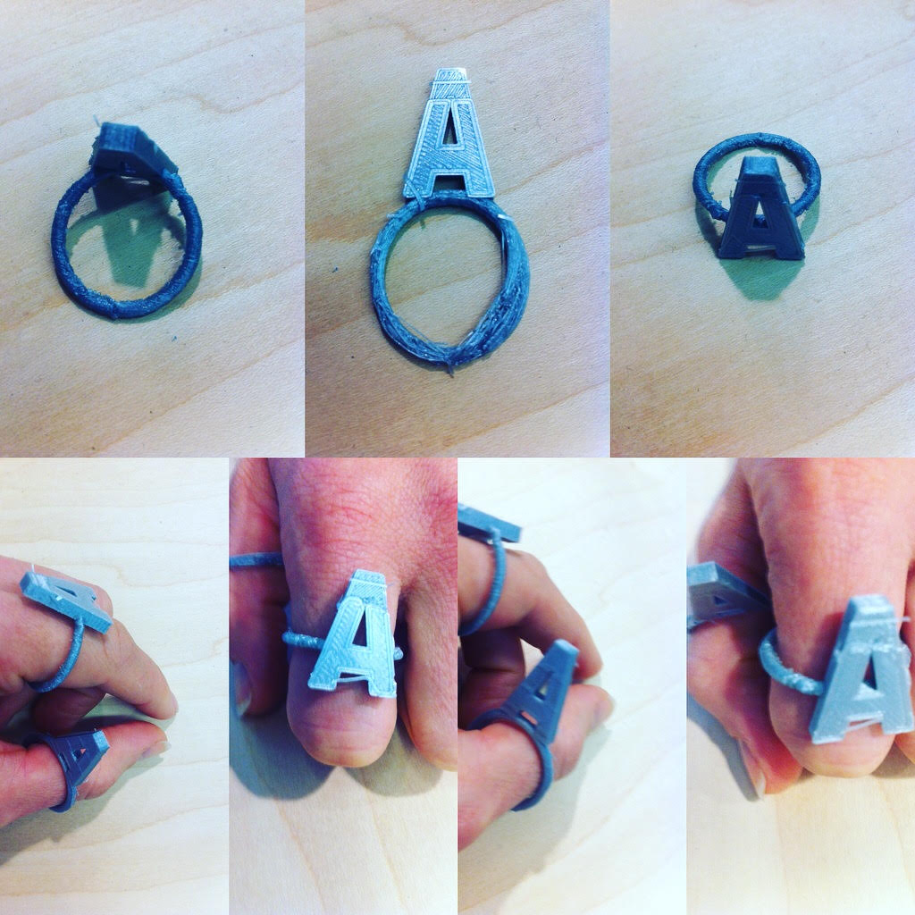 So I got onto Tinkercad, took some tutorials, and I designed two rings for my step-son, whose name is August, so they both have an ‘A’ on them, but at right angles to each other. This gives him some options when wearing it. Options are critical.