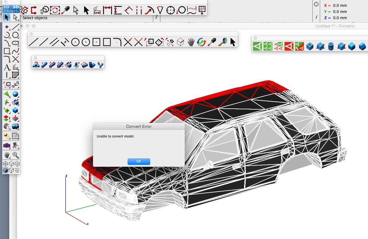 Although I can import the model in my professional 3D modelling software, it is not possible to stitch the mesh together and convert it to solid. See attached screen grabs.