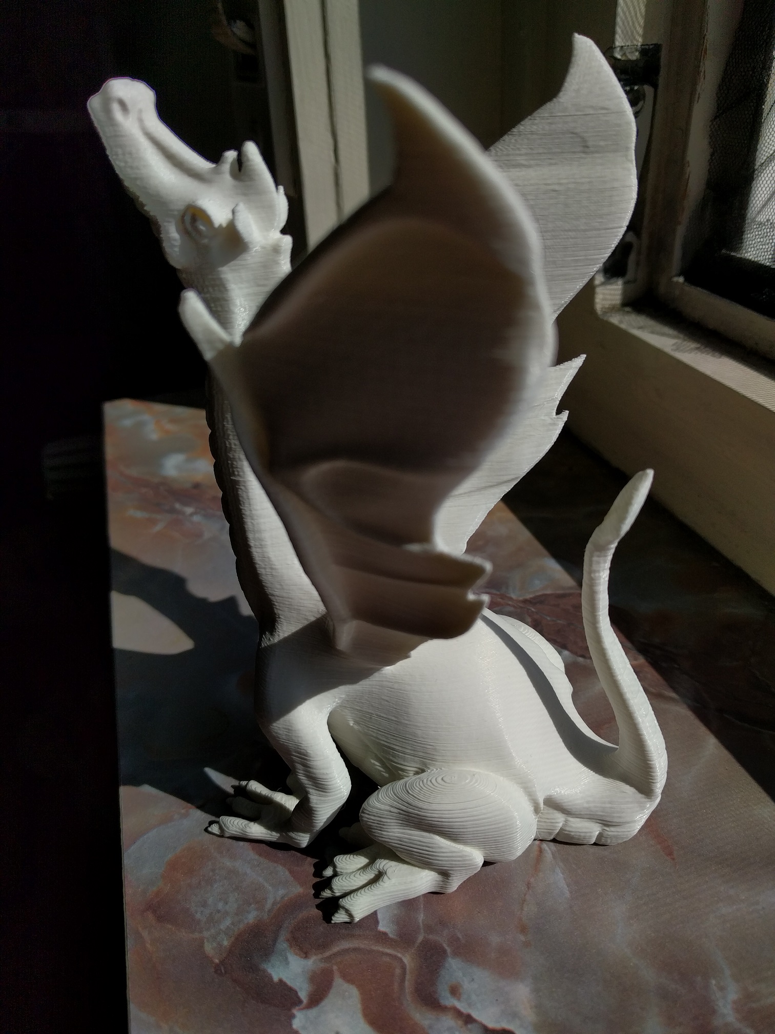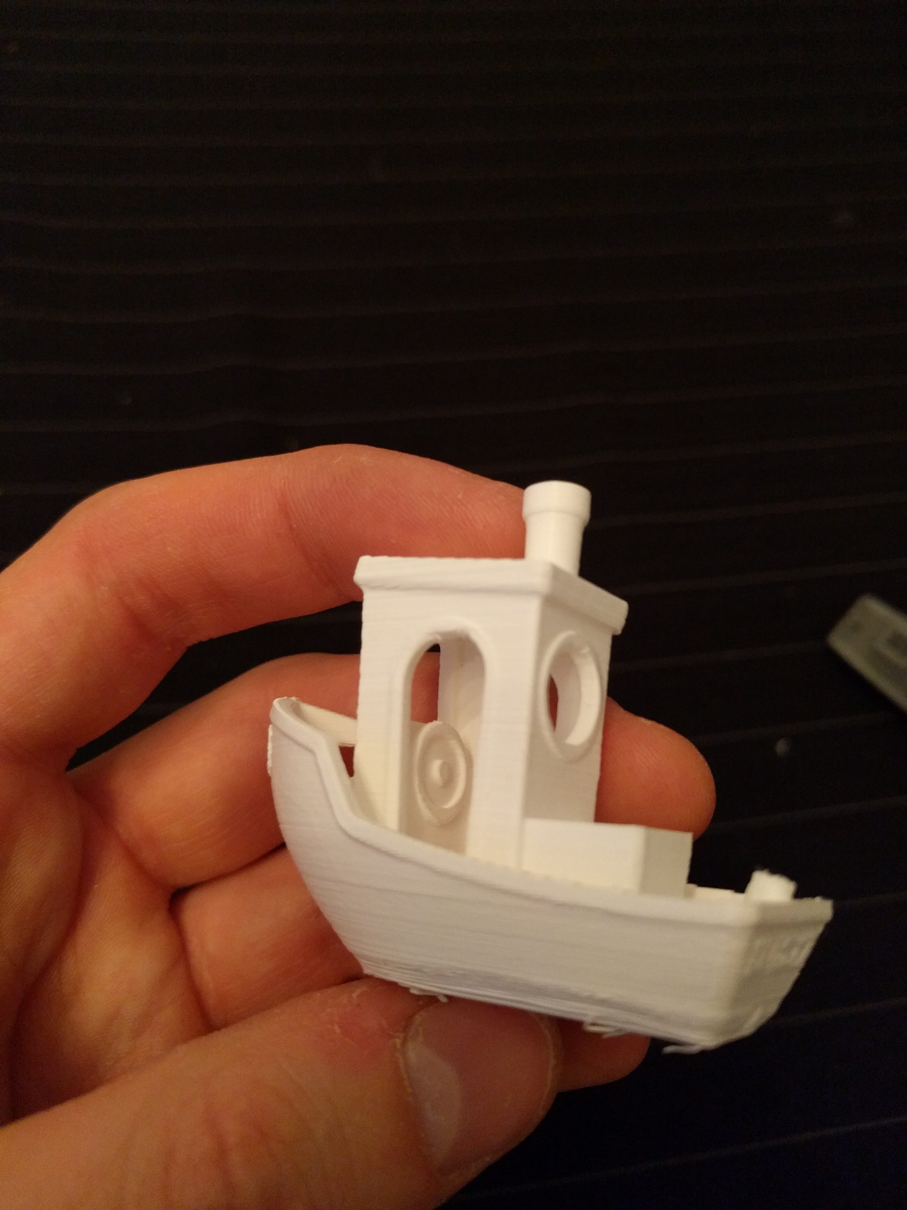 I printed another white Benchy out of PLA. It looks underextruded. The gray Benchy out of PLA was one of my first prints when I first set up the printer. It was pretty much near perfect.