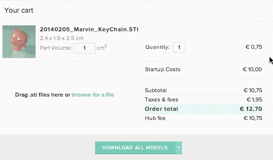 Today we’re extending that by announcing the ability to change the part volume from the order page. Hubs can adjust the volume upwards or downwards by simply typing in the desired volume, this volume could accomodate for example: