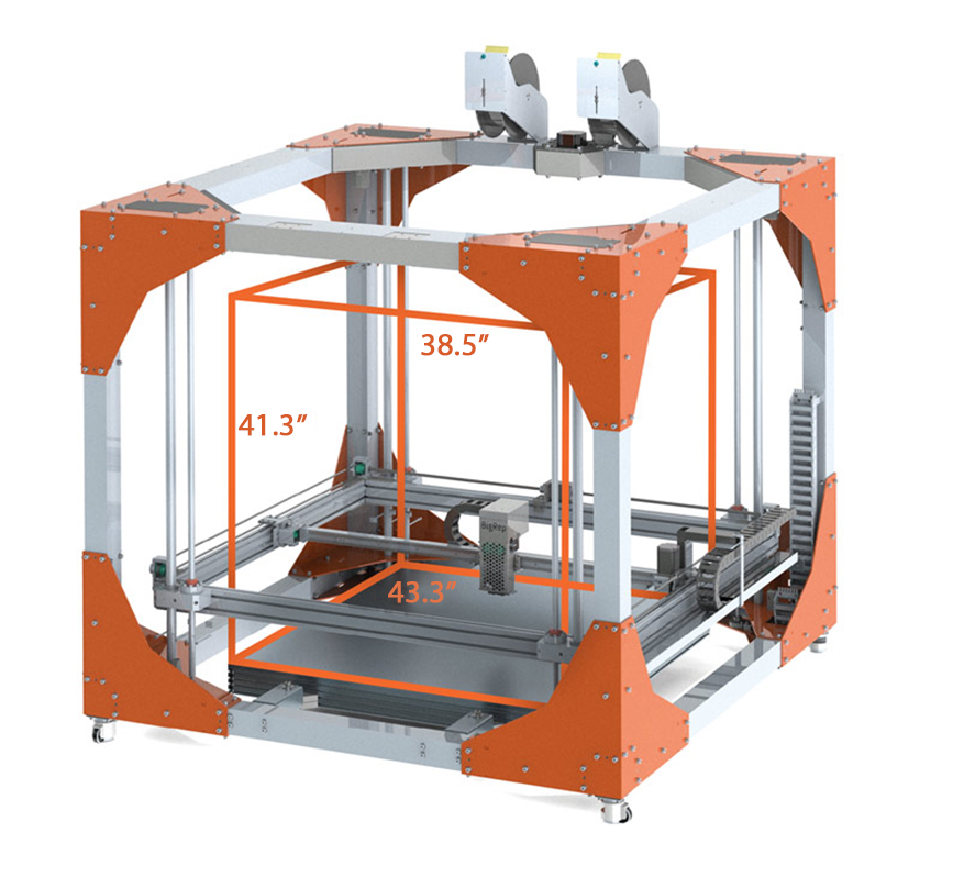 I think your best bet is to stick with that setup if you intend on taking advantage of the full dimensions. The big nozzles and thick layers might limit detail/resolution but with geometric designs(like the beautiful crystal you printed) dimensional accuracy is still perfect and should yield great prints. I use .1mm nozzles with .1mm layers on my smaller printer if I need high detail but using that set up on anything larger than a few cm^3 starts to get ludicrous. My largest printer is 25.4cm X 25.4cm X 26.0cm. Use anywhere up to .8mm nozzle on one extruder for infill/support any anywhere from .2-.5mm on the other. I have considered putting together a large format (looks like so much fun) but I haven’t had the need that would justify. Good luck and enjoy!