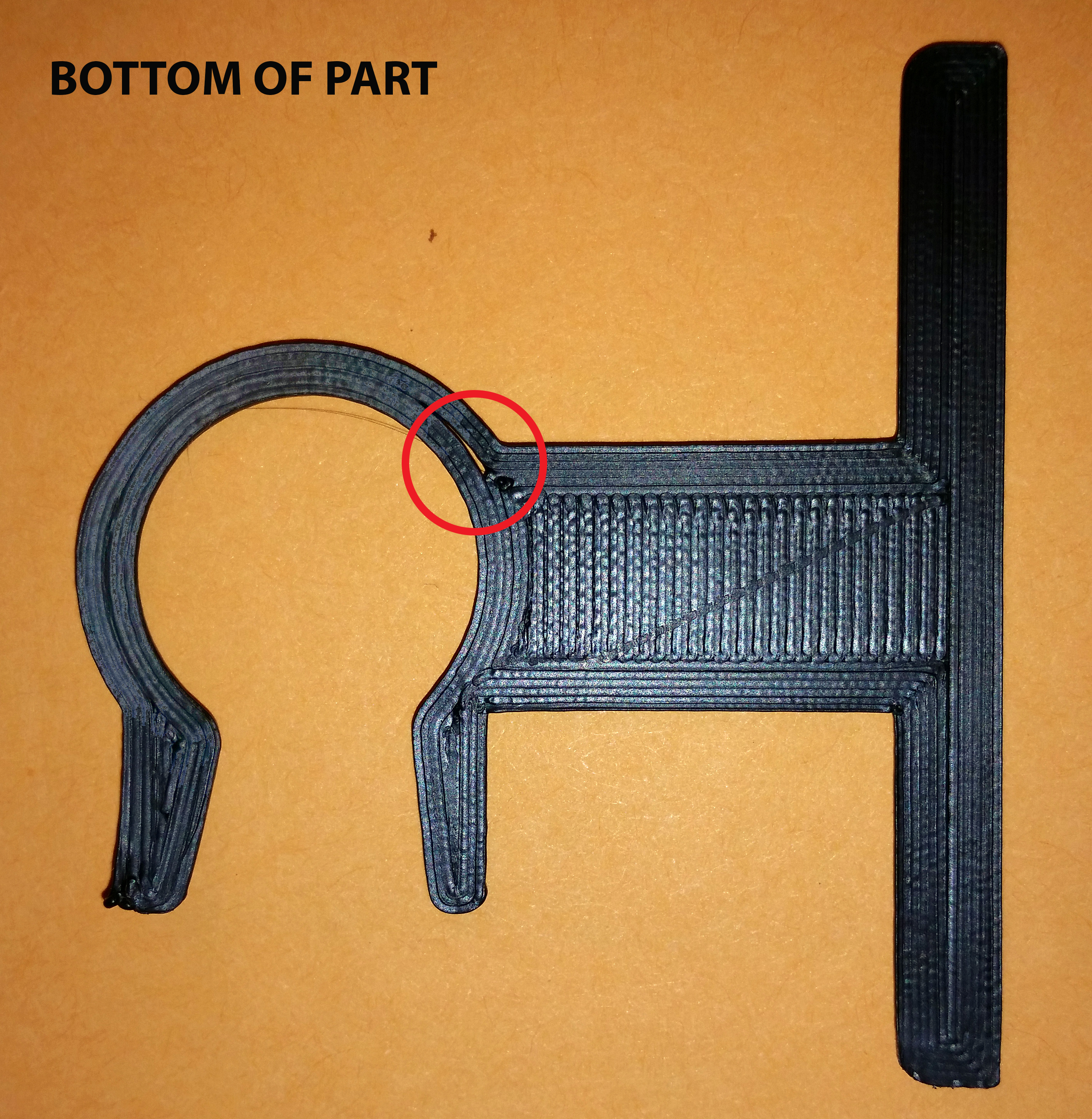 Second, the circled area shows a gap in the fill that also results in a gap most of the way around the circular latch portion of the part. I wanted this to be solid, as well as the ‘T’ crossbar portion of the latch. The circular part thickness is 0.125" (3.1mm) and the crossbar thickness is 0.25" (6.4mm).