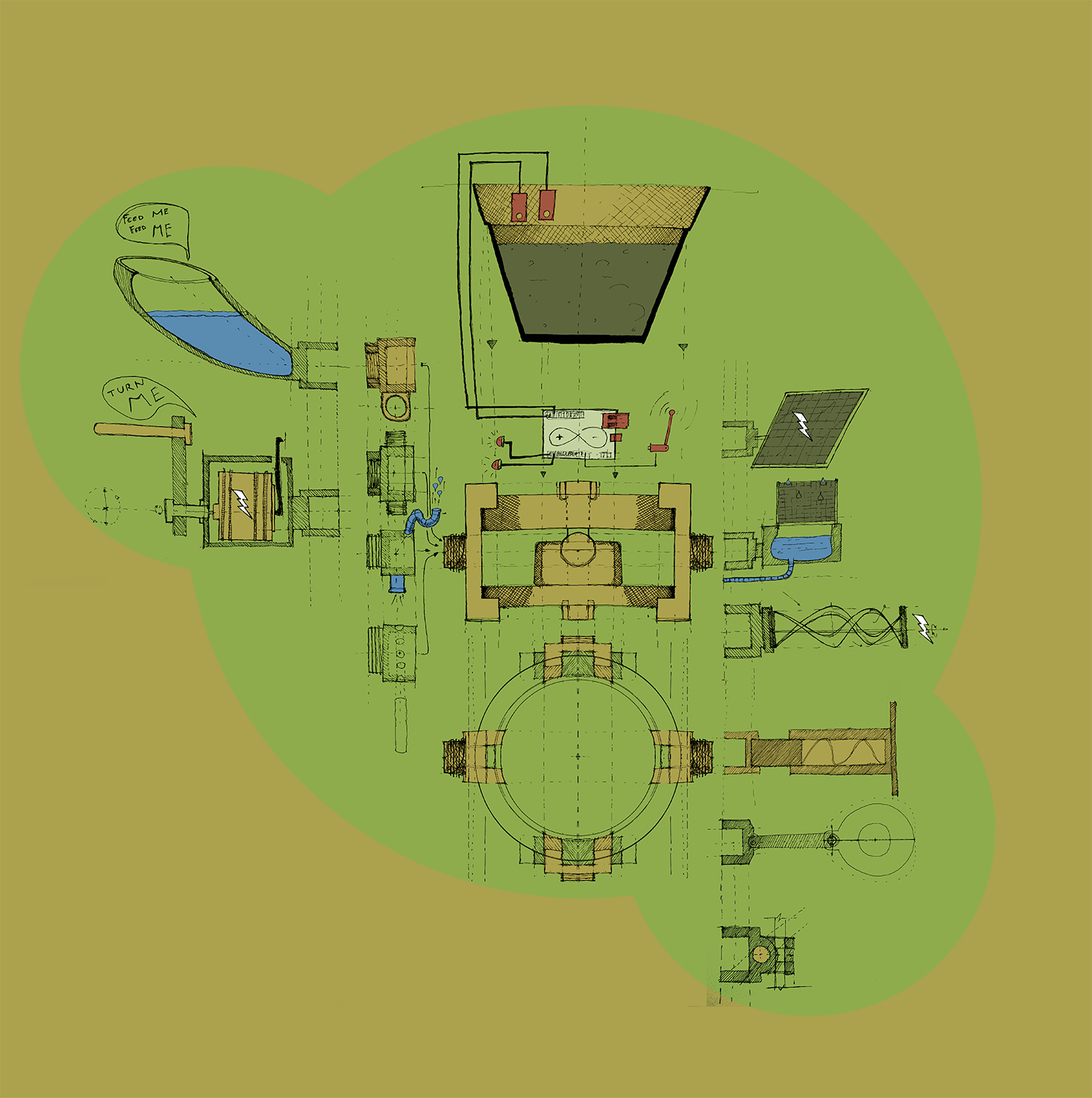 Instead of creating a self-sufficient environment for the plant to grow, the plant will grow in an ecosystem were the missing resources needs to be added by the maker/hacker.