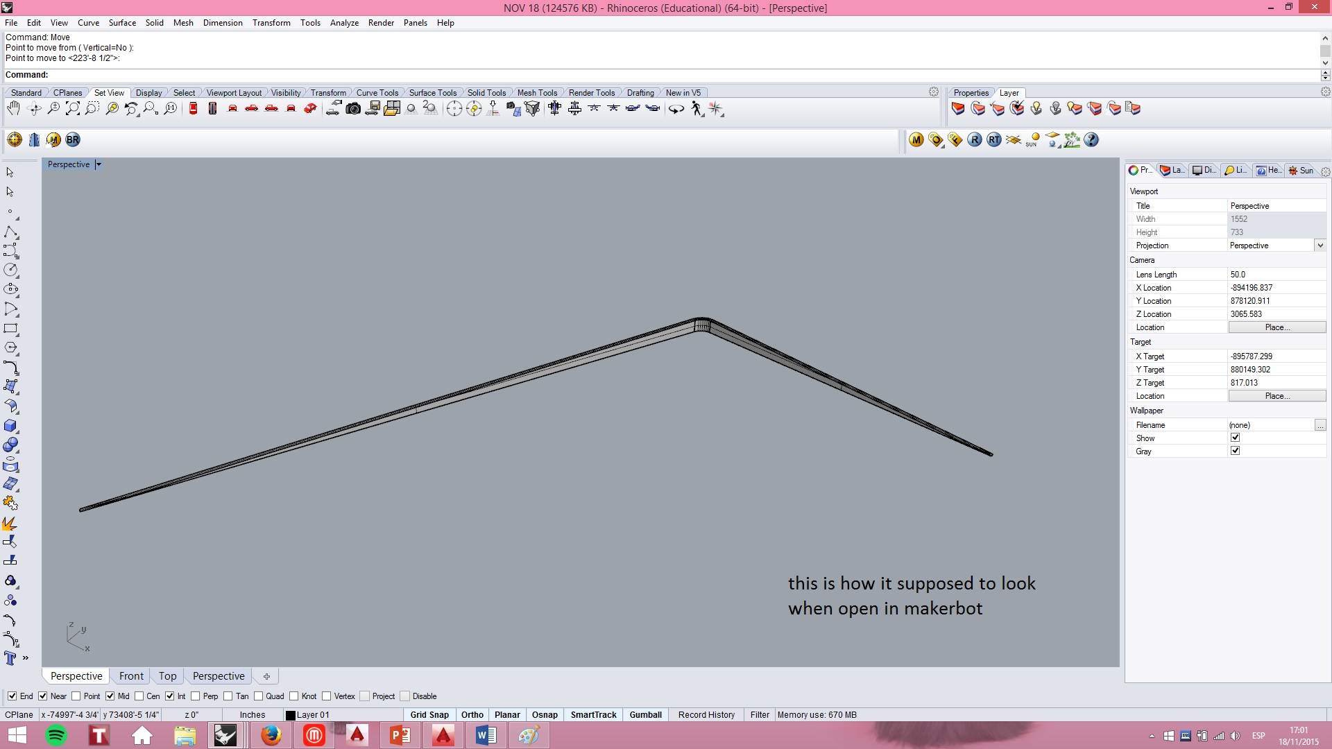 I have been using rhino and the makerbot for 3 months now. However, Im having trouble printing my file on the makerbot. Im having two different problems that I can manage to fix. Everytime I open my rhino file on makerbot it shows some of the surfaces black, and in some other cases the entire model comes out curved and weird… Im attaching photos to explain my problem…