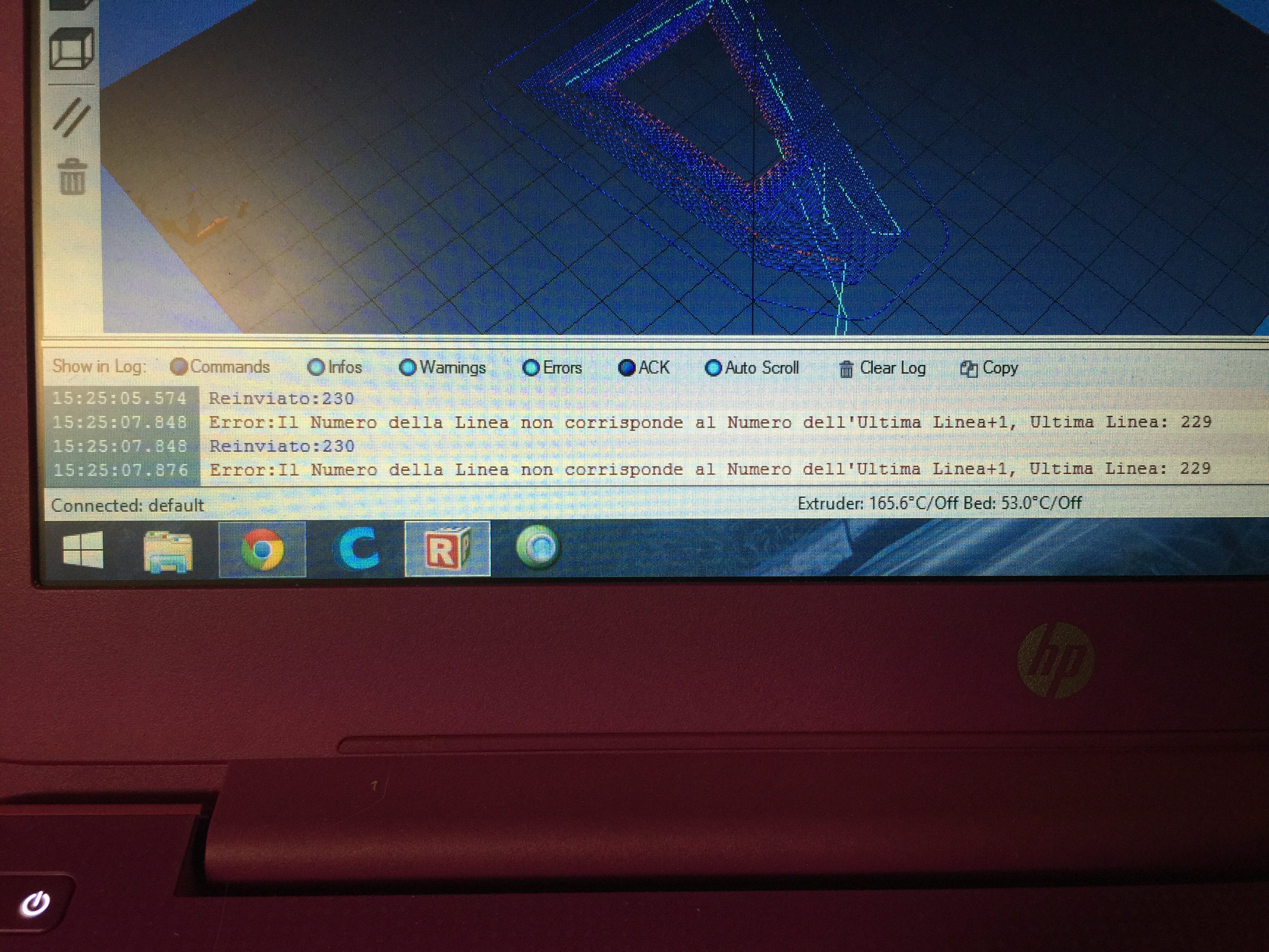 I keep having an issue where a print will start but a couple of layers in, it will stop and Repetier will throw up errors in another language. I’ve had this happen with different STL files and Gcode created by different slicing programs. I’ve attached a photo of the errors.