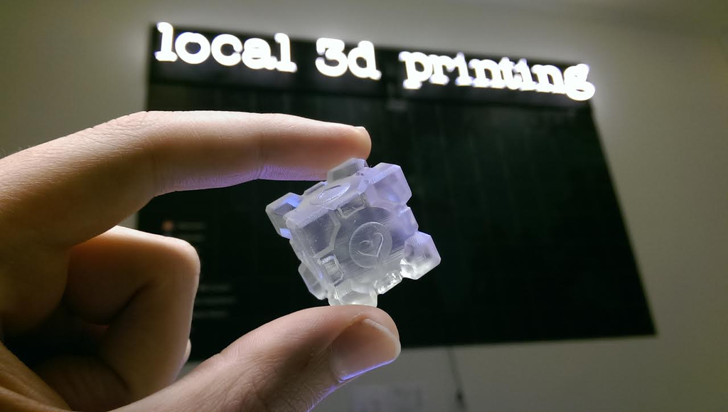 Finally, as a big gamer, I also love printing memorabilia from my favorite games. If I mention the companion cube from Portal 2 I’m sure that’ll ring a bell with many of you. I found a great version of the companion cube on Thingiverse that was modeled so it would be perfectly printable on any FDM machine. This did however mean that it had a flat side and I wanted the cube to be as close to the original as possible so I went ahead and modified it a bit. I then printed about a dozen of them in different materials and on different machines.