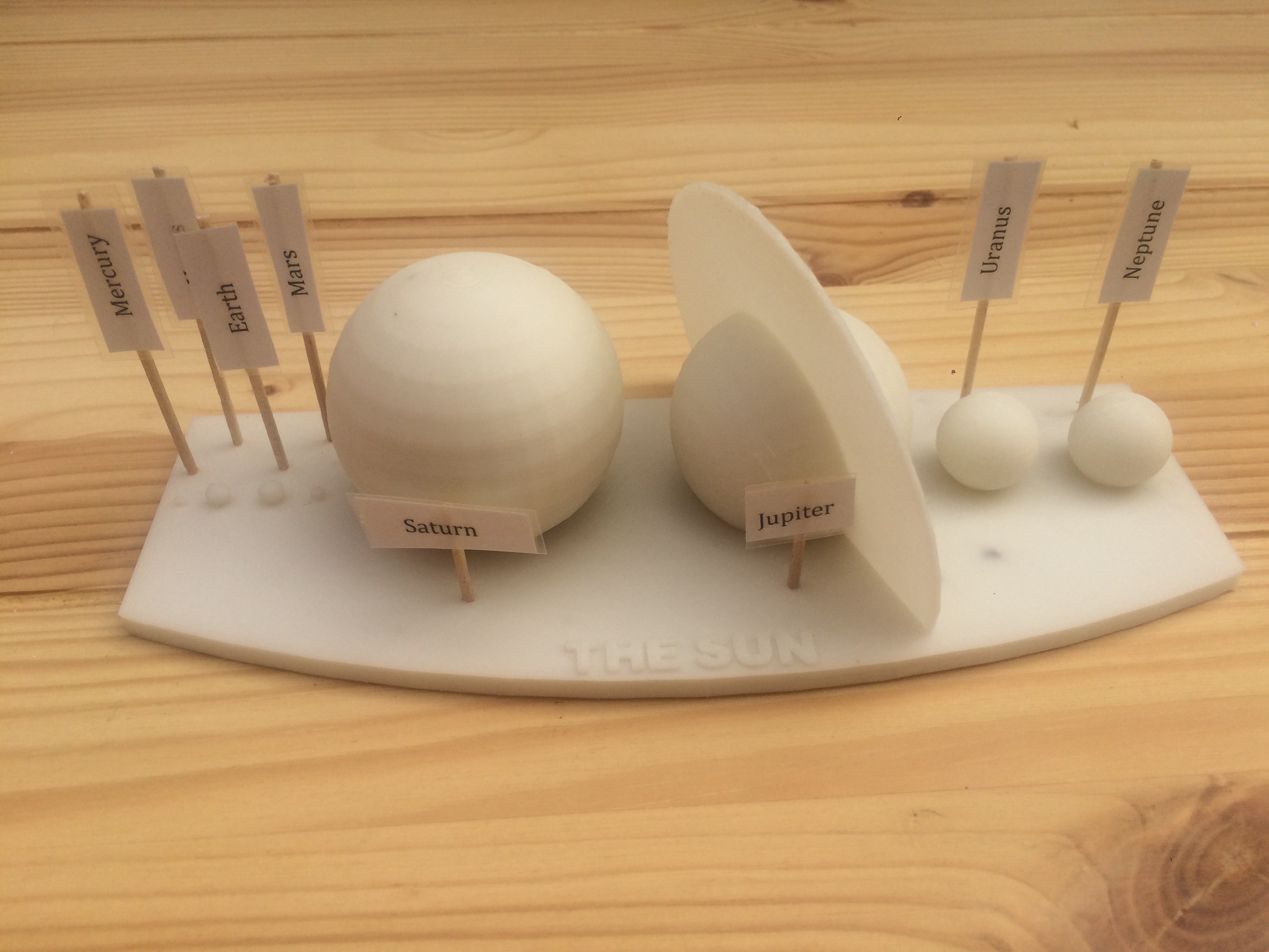 The model is public and available on Tinkercad (and Thingiverse). We used toothpicks as label flags, but if I were to suggest a tinker, maybe more planet names.