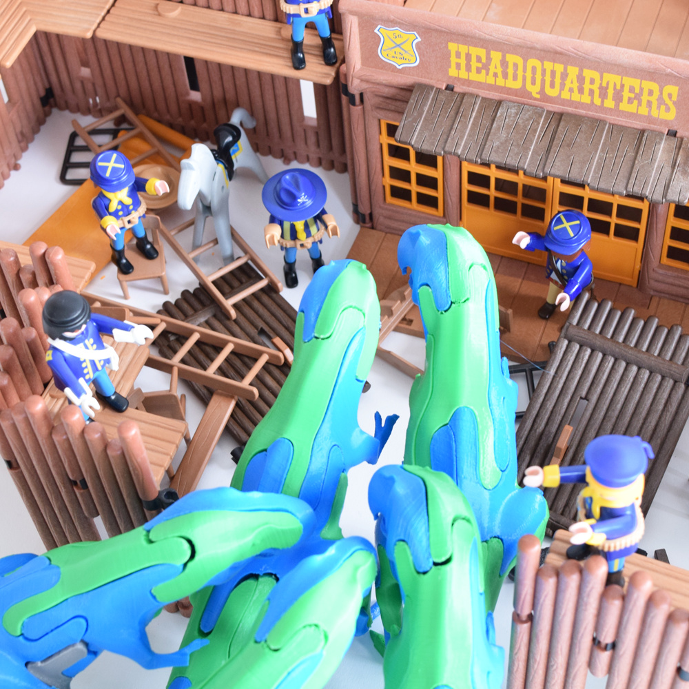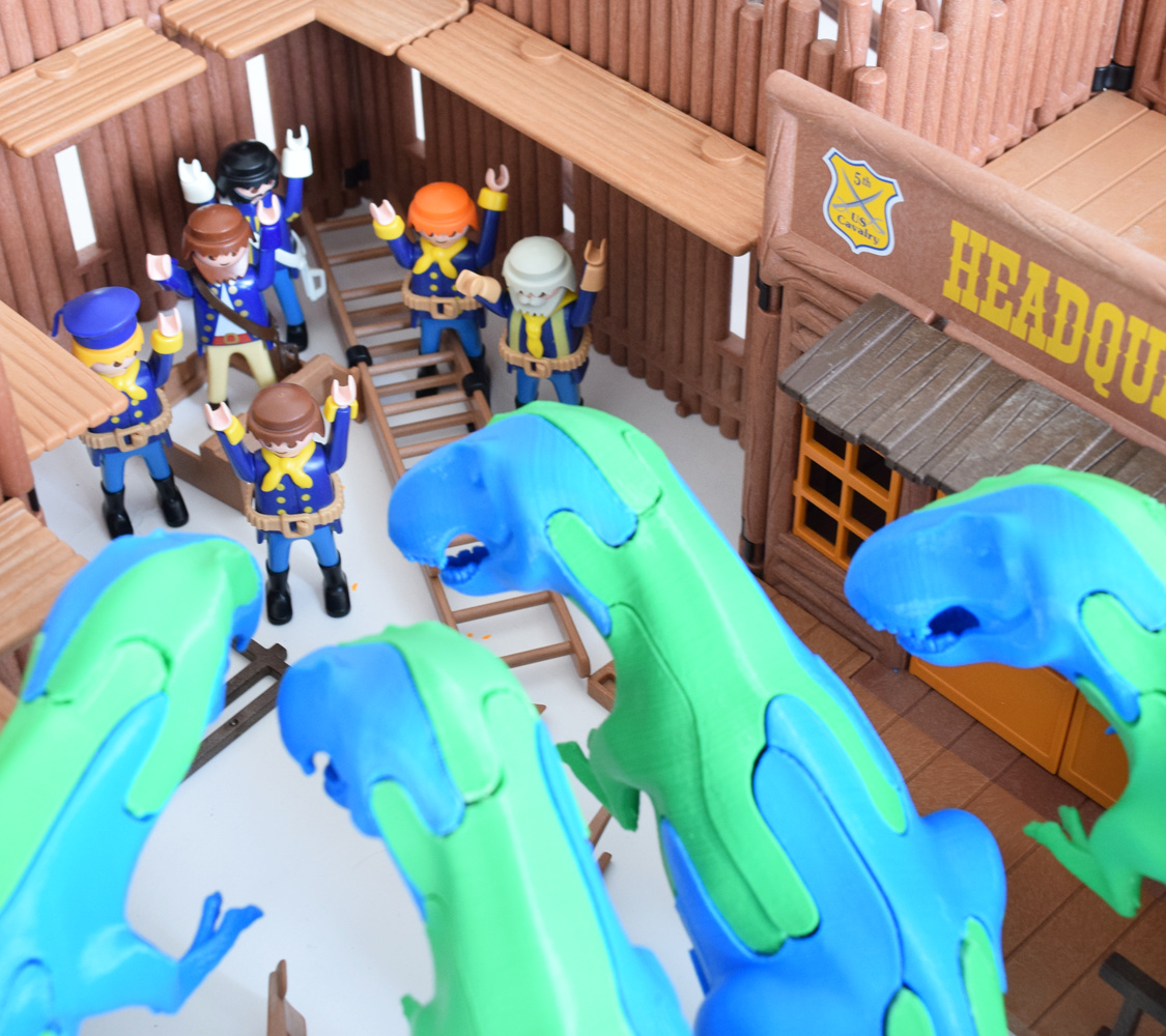 The Heiners tried to chew their way through a corner of Fort Glory, but were headed off by Colonel Whitebeard and his might bugle. After unleashing a terrific sound, the Heiners scattered, searching for another entrance to the fort.