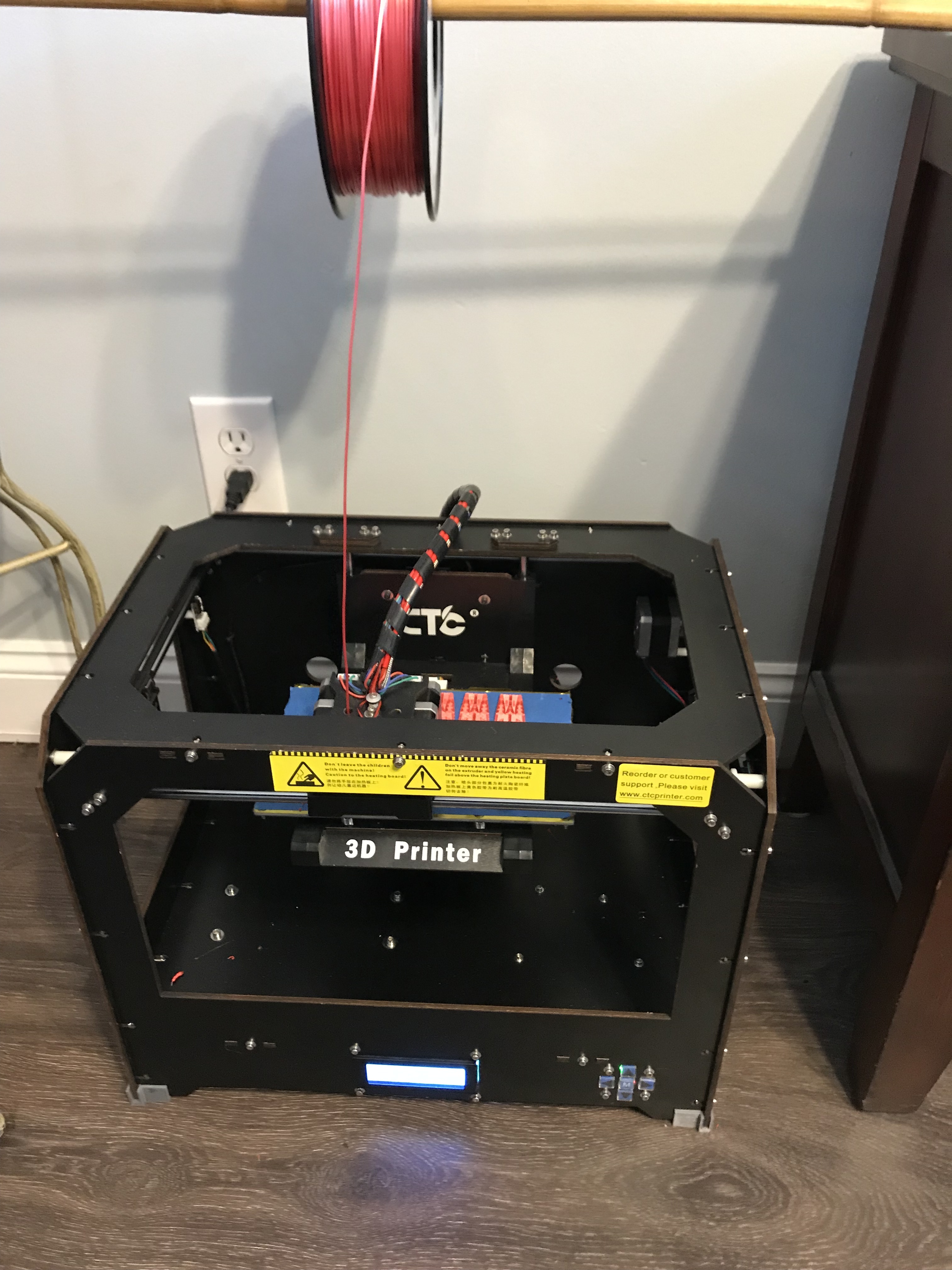 I am a teacher at a small Charter School and found a CTC 3D printer in a back room. Apparently when it was purchased a few years back no one could get it working. I took it home and after some testing with a lack of Z-Axis movement found the Z-Axis cable was plugged in tot he wrong place on the motherboard. The first image is what I was getting prior to fixing the cable. I used MakerBot to connect with the printer.