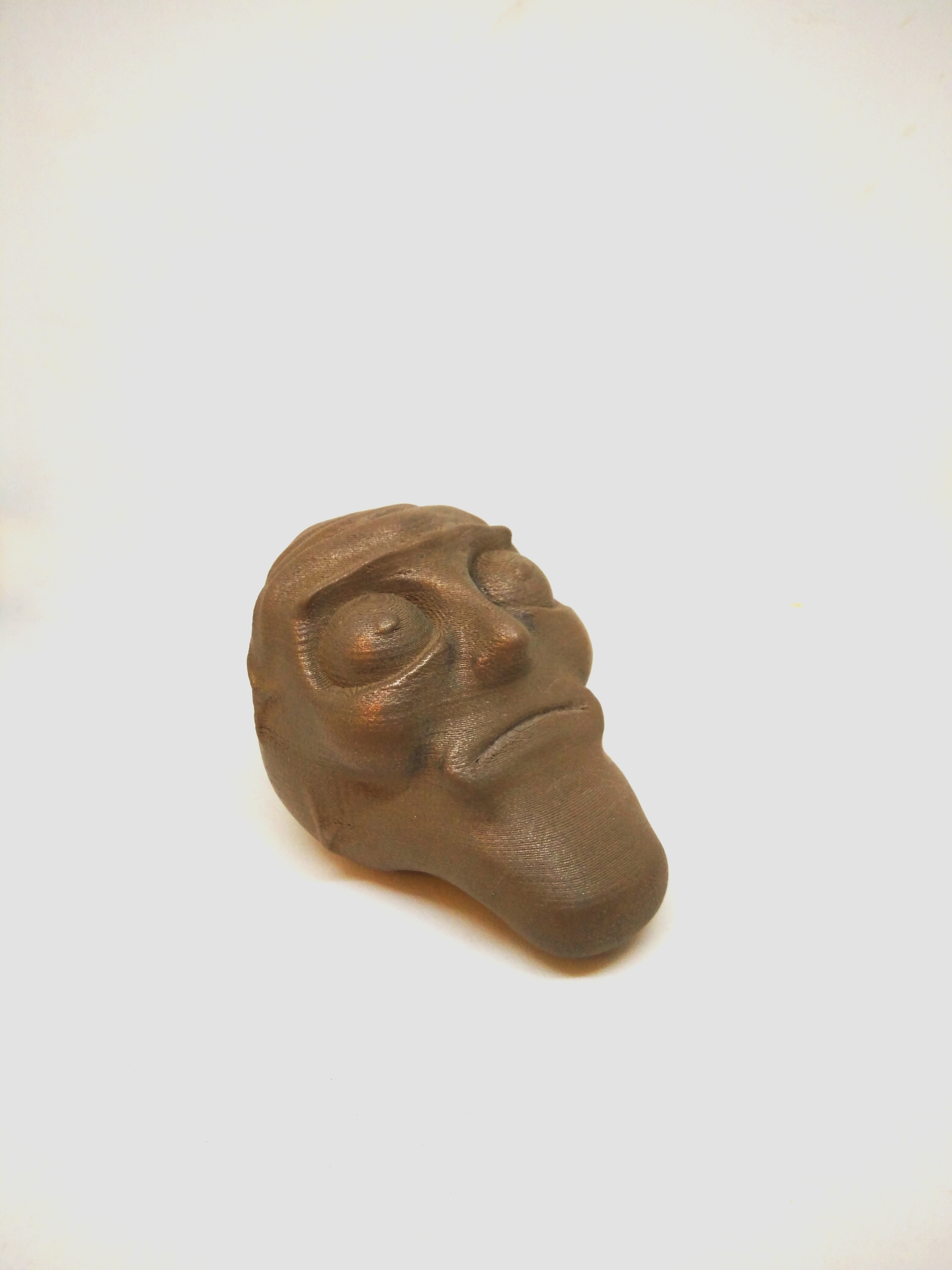 I was so happy with the result that I decided to print another (smaller) one in one part and in BronzeFill from @ColorFabb and then tumble it to make it shiny ! Still printed with the CraftBot+ with regular PLA setting (Fan off). Infill is 50% to make it heavier !