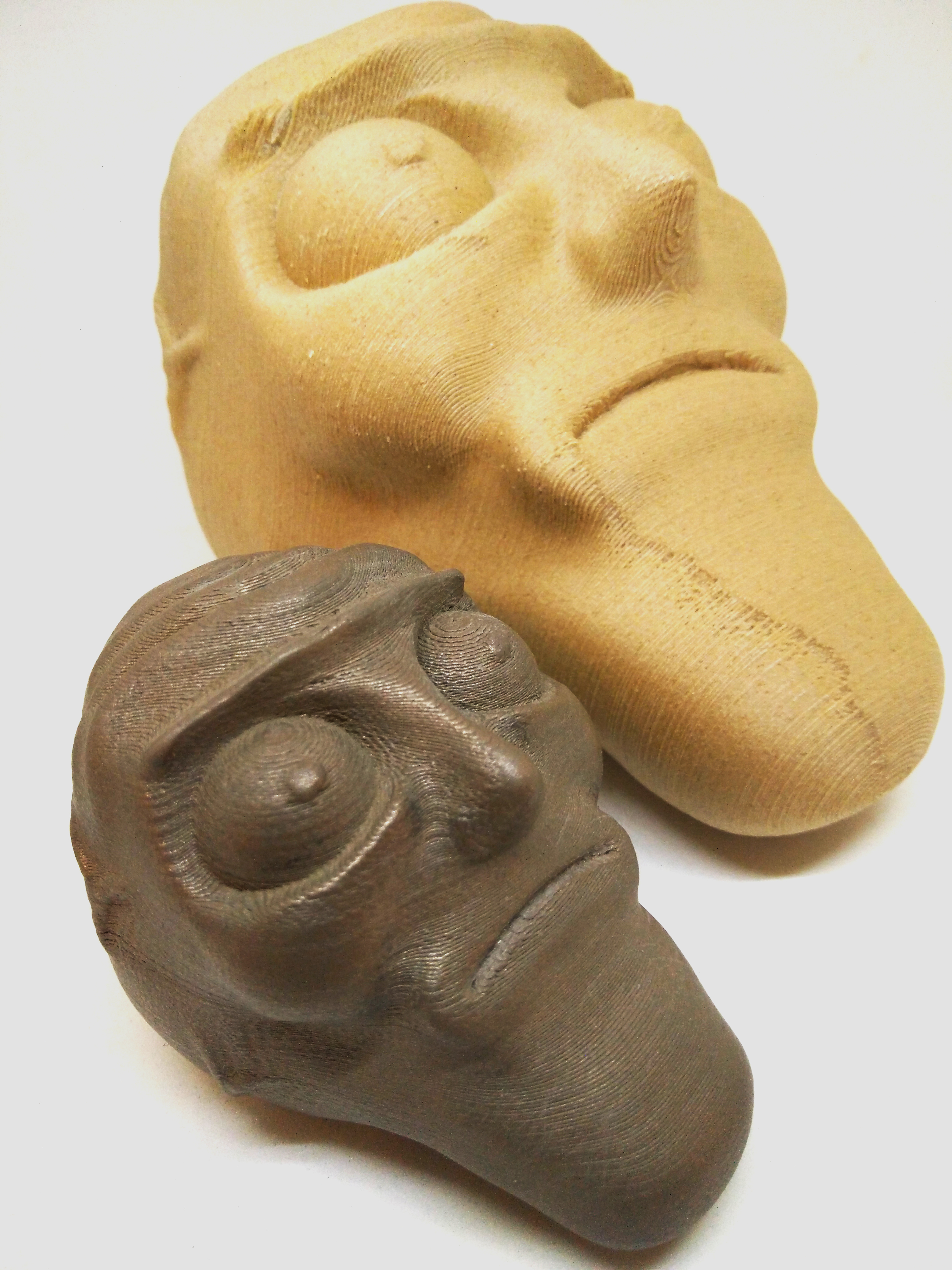 So it was printed in Woodfill with 20% infill, 200°C, heated bed off, 60mm/sec.