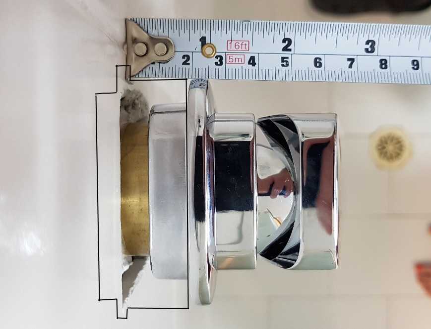 I don’t think you need to replace the part, I think you just need an extended cover plate from the wall to the backside of your current cover plate. I’m guessing the plumber left the pipe too long or you’re missing the piece I’m talking about. I created one based on what I can see from your pics. Hopefully the image will come through.