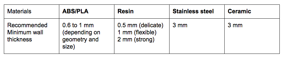 The wall thickness, or the minimum wall size of your model, is another important parameter you need to take into account. Too thin walls might make your model non-printable or break after completion.