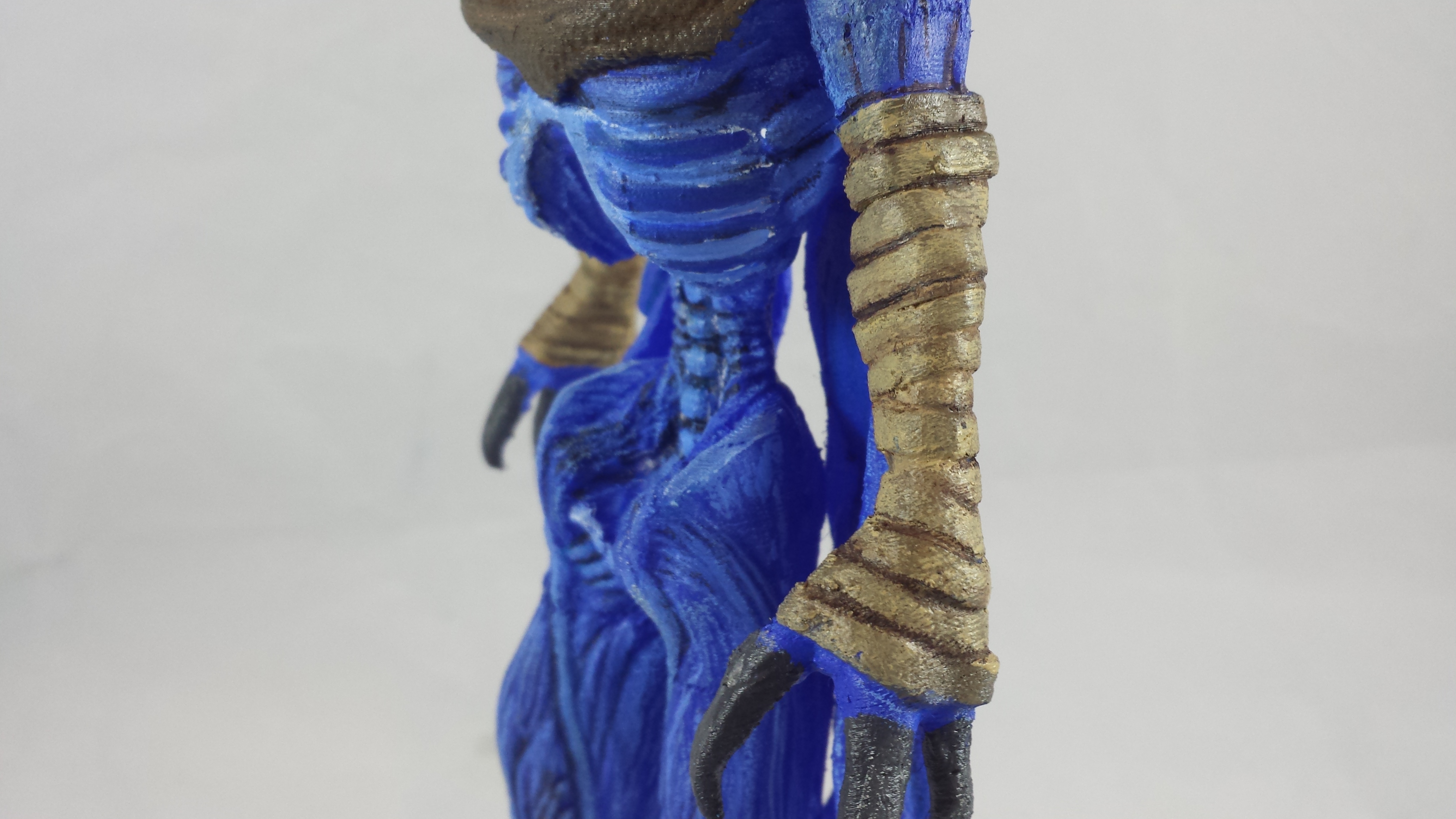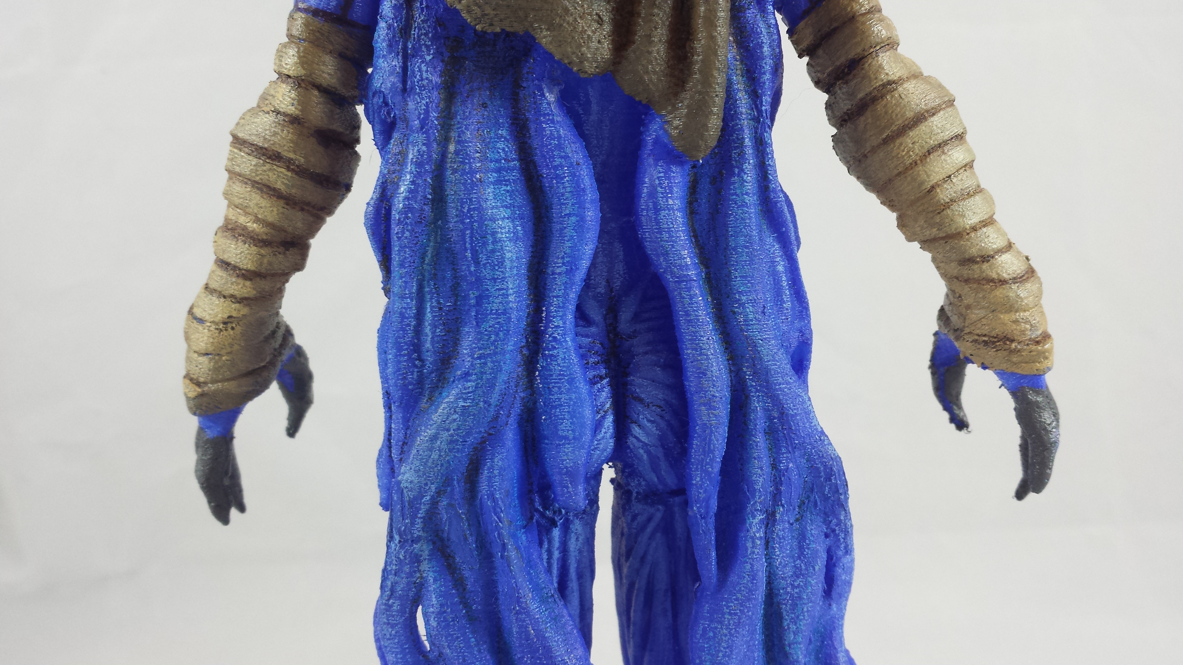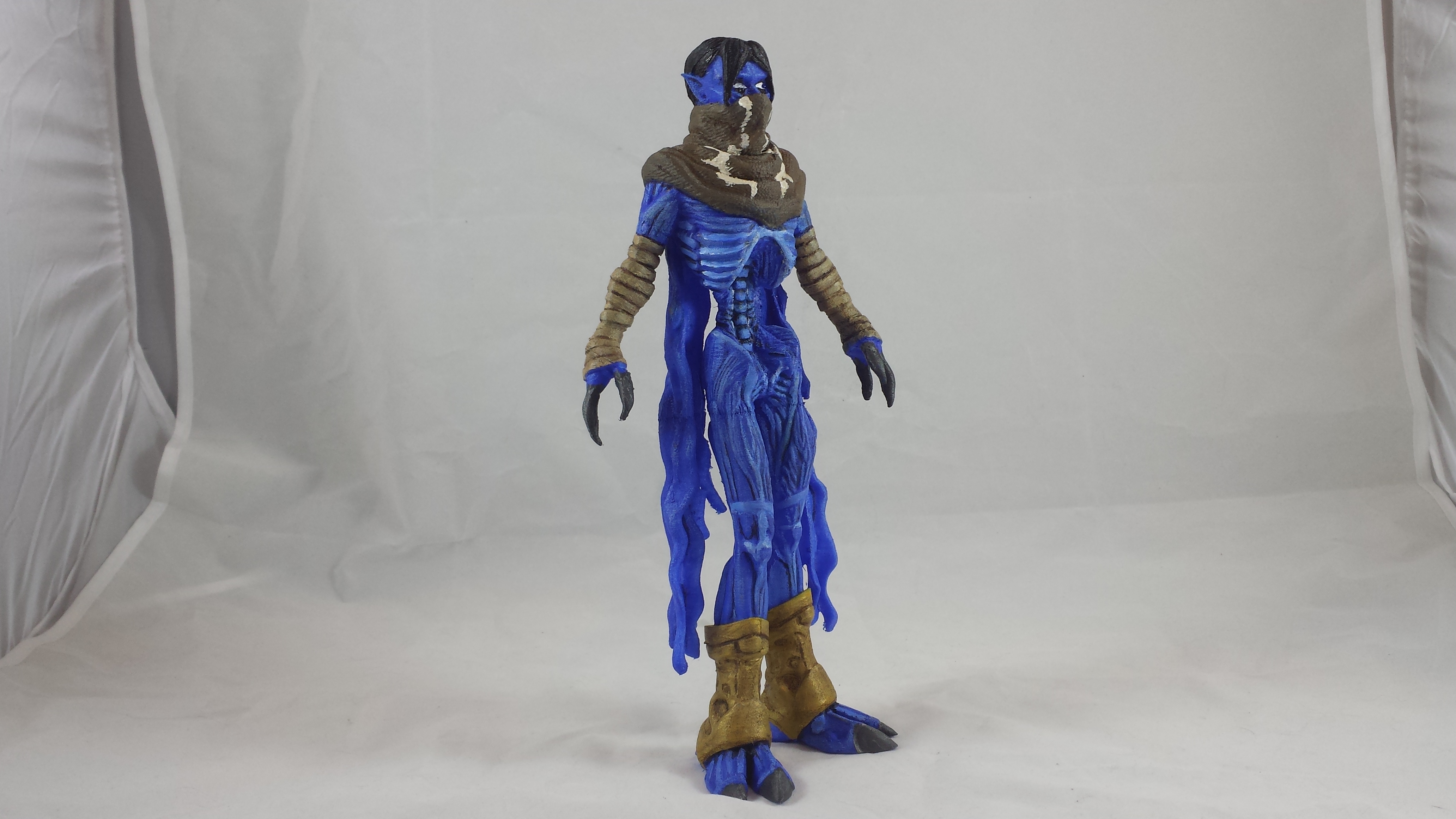I finally finished my Raziel from the Video Games Soul Reaver, Soul Reaver 2, & Legacy of Kain Defiance. 3d printed it on a Printrbot Simple Metal in a PET+ filament. Assembled with super glue. Paint job was done with FolkArt Enamel Acrylic paints and Prisma color pencils.