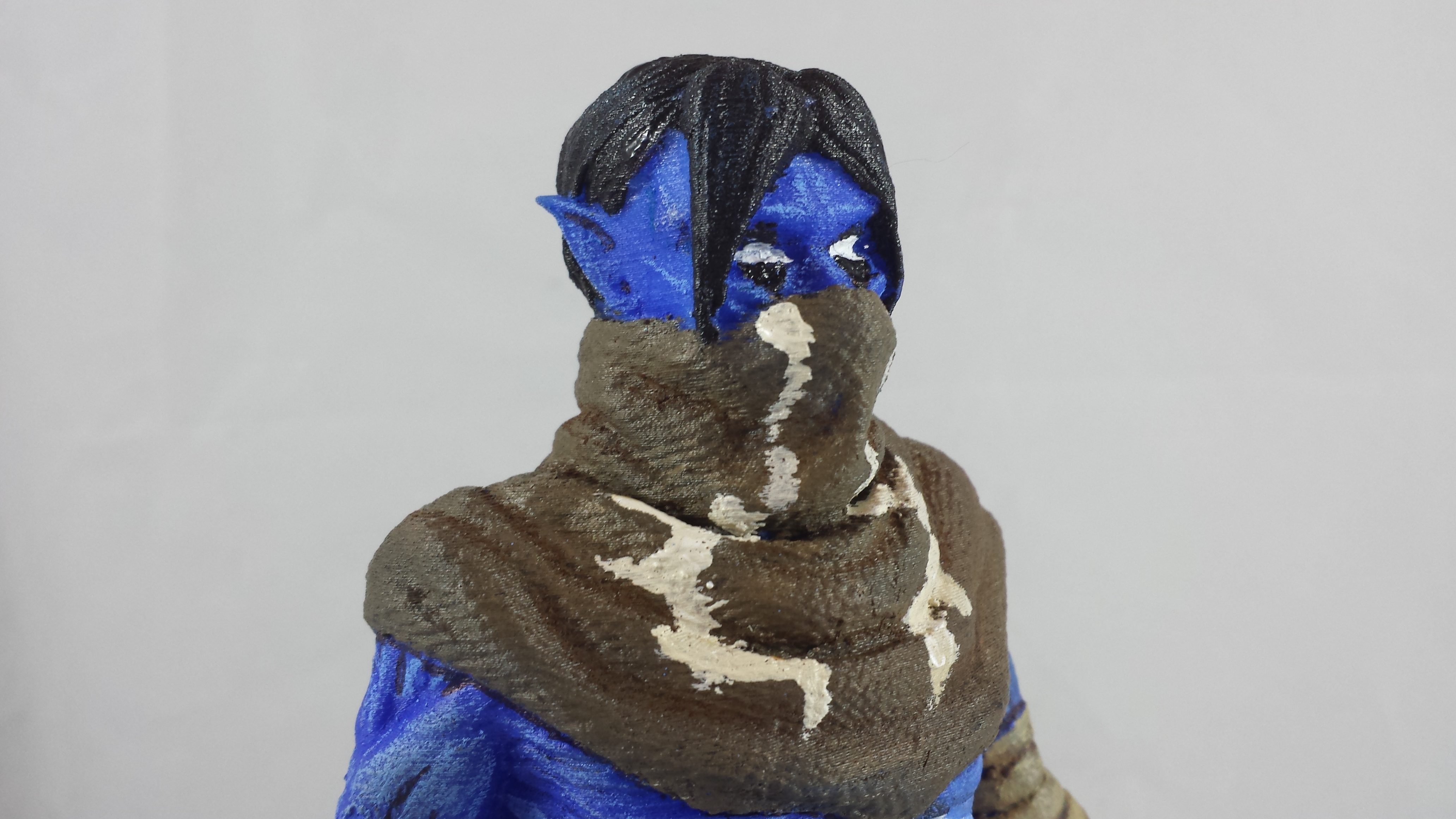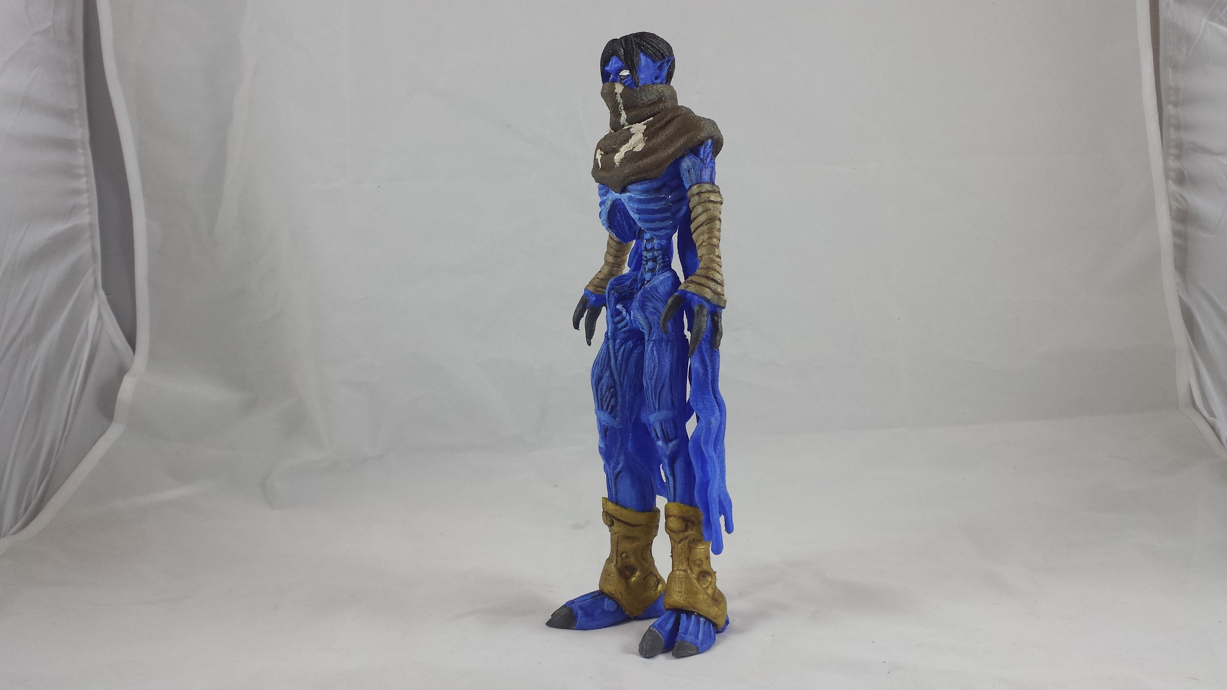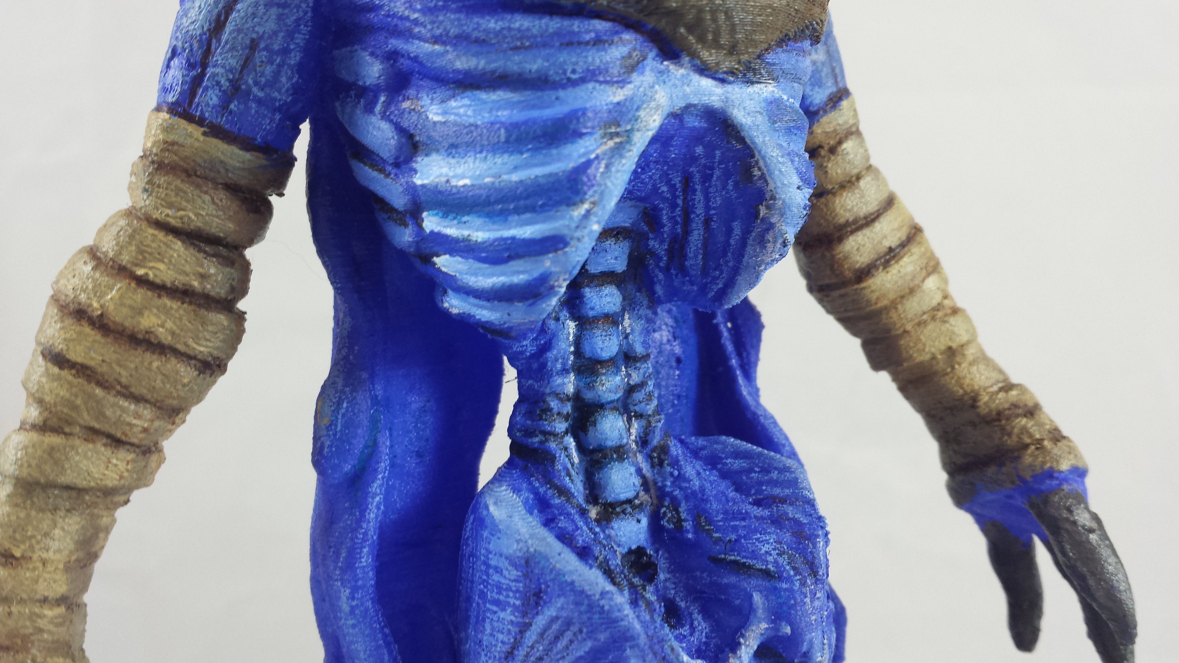 I finally finished my Raziel from the Video Games Soul Reaver, Soul Reaver 2, & Legacy of Kain Defiance. 3d printed it on a Printrbot Simple Metal in a PET+ filament. Assembled with super glue. Paint job was done with FolkArt Enamel Acrylic paints and Prisma color pencils.