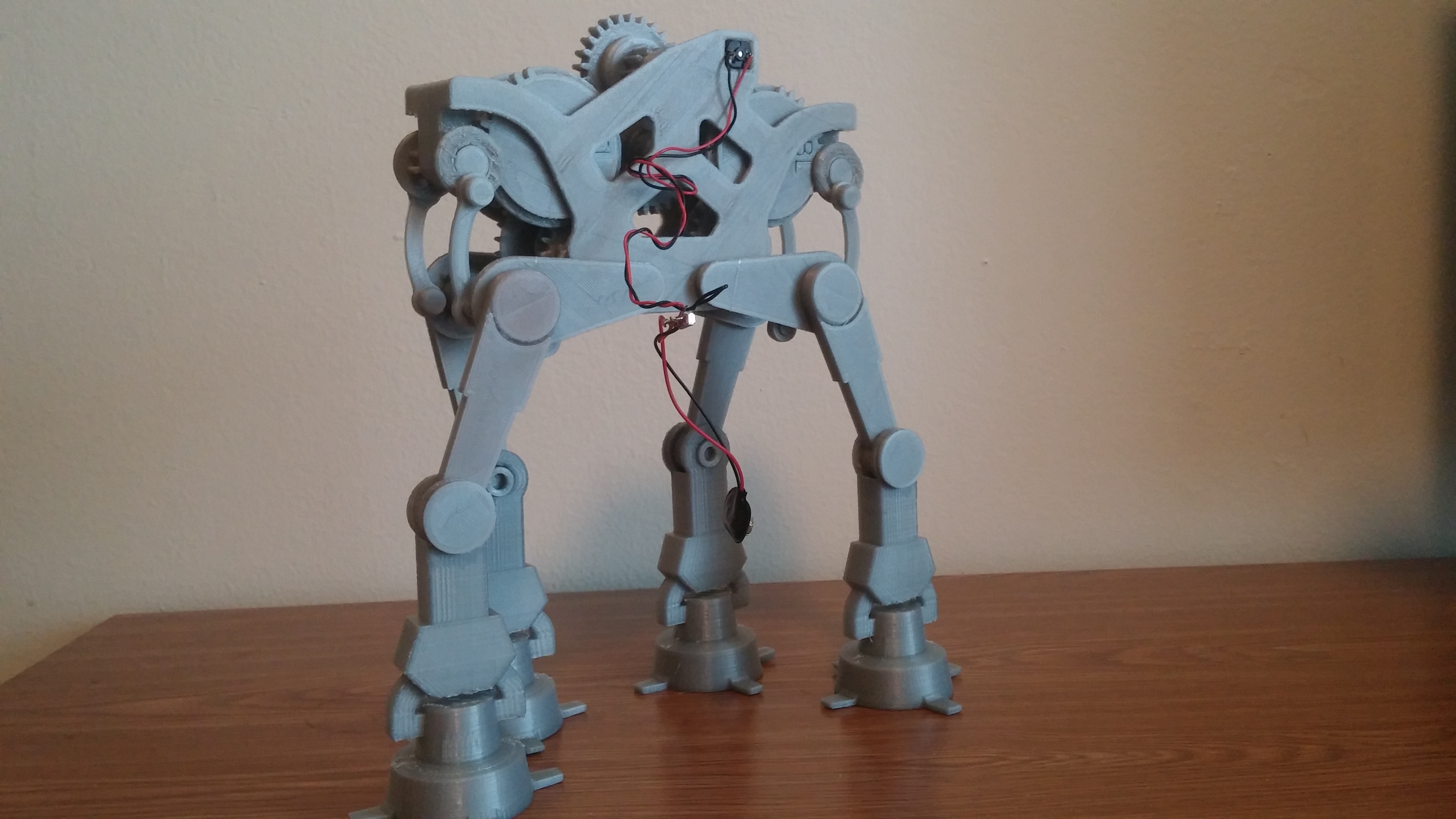 I 3d printed a motorized AT-AT. It uses just one motor for all the legs and the rest is 3d printed.