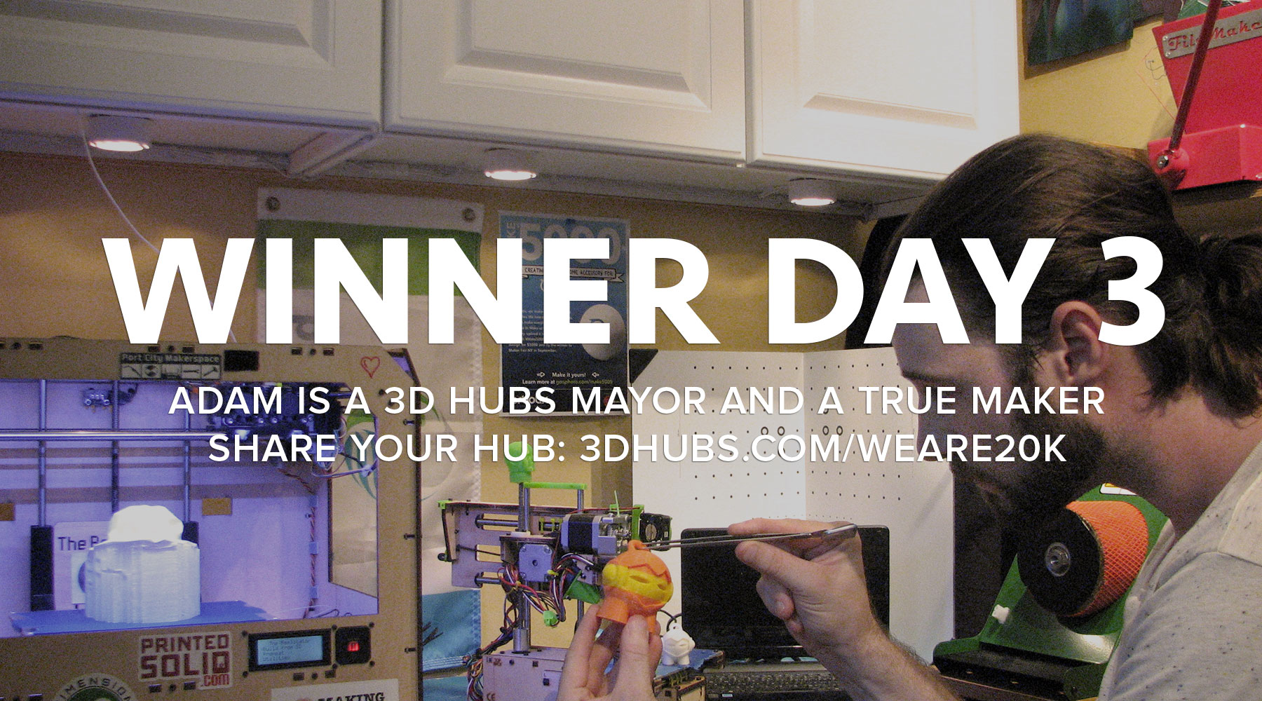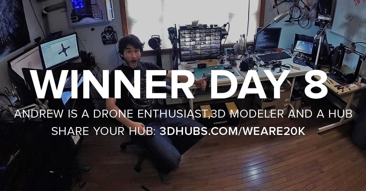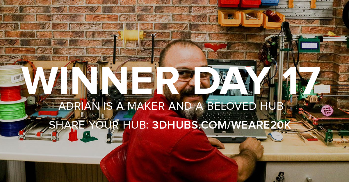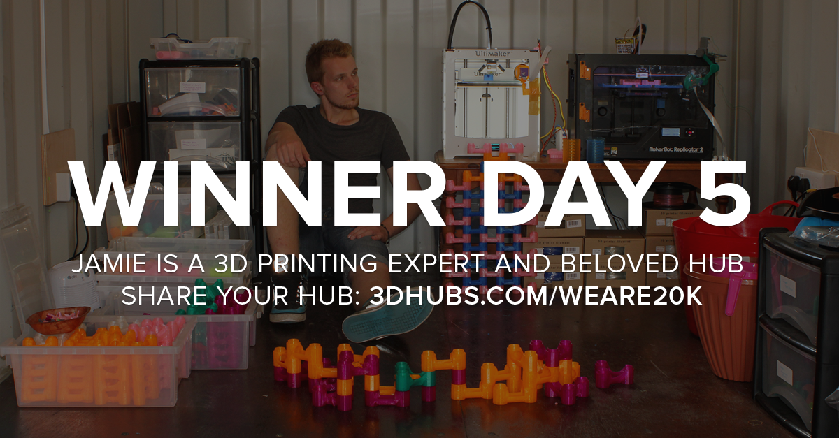 Of course, we will have some cool giveaways to go with this celebration! Each day, for the next 20 days, we’ll feature a Hub photo on the 3dhubs.com homepage linking to your Hub Profile page! We will also send a 3D Hubs Hoodie to each featured Hub. All other submissions will be shared and promoted through our social media channels as well