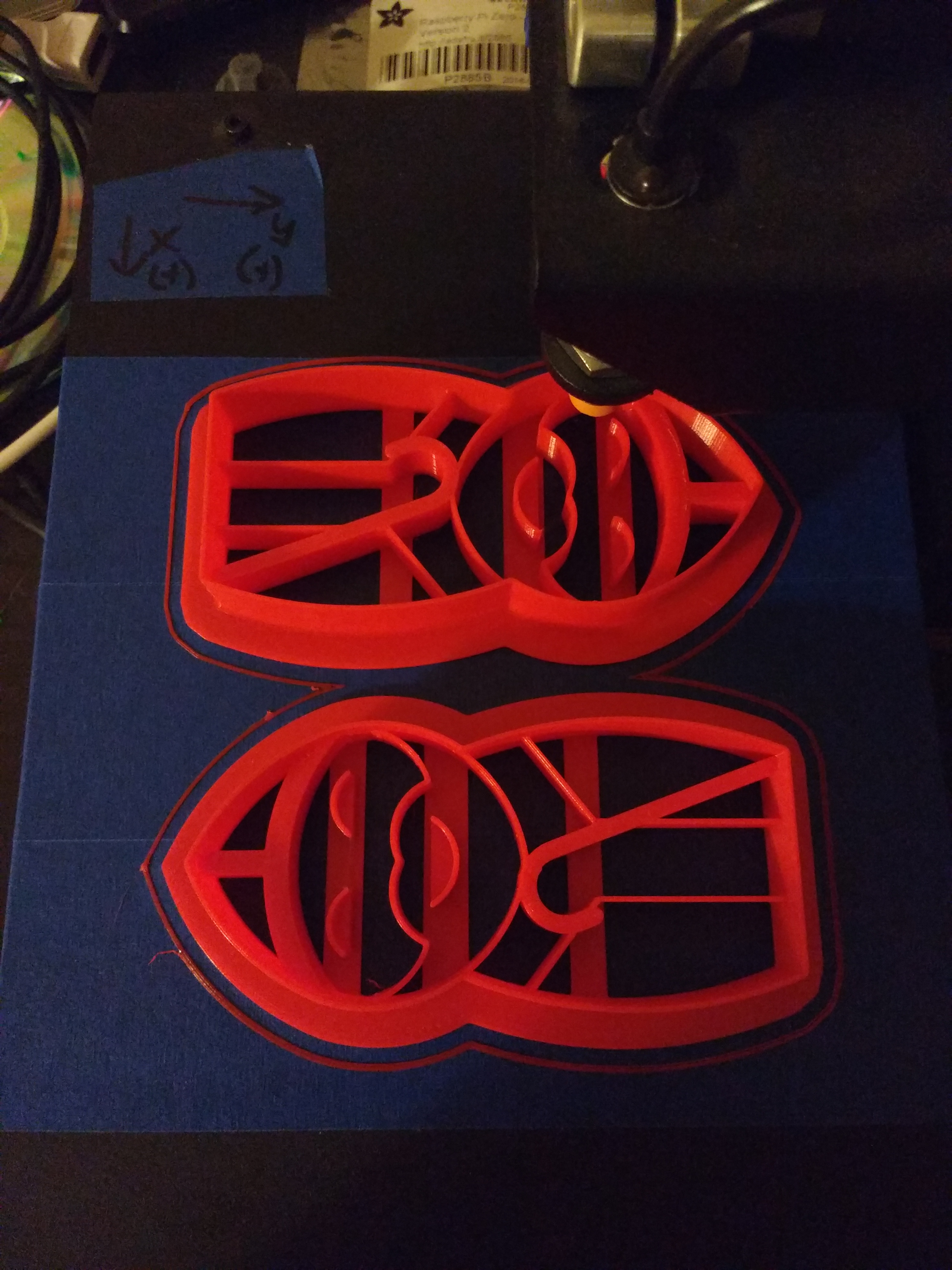 So I’m having some issues with my printer that I hope you can help me with. I’m currently trying to print two copies of a cookie cutter at the same time, and I’m having top layer issues on only one of them! I assume that this is a software issue, since one of the prints always comes out ok.