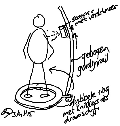 Een gordijnrail maar ook een statief kan ik misschien éénmalig een kromming geven, maar natuurlijk niet telkens verbuigen naar een andere buikvorm. Tenzij er een soort flexibel materiaal te vinden is, die je telkens in de gewenste vorm kan buigen en stevig genoeg blijft om de sanner eraan te monteren. Heb jij hier een idee voor?