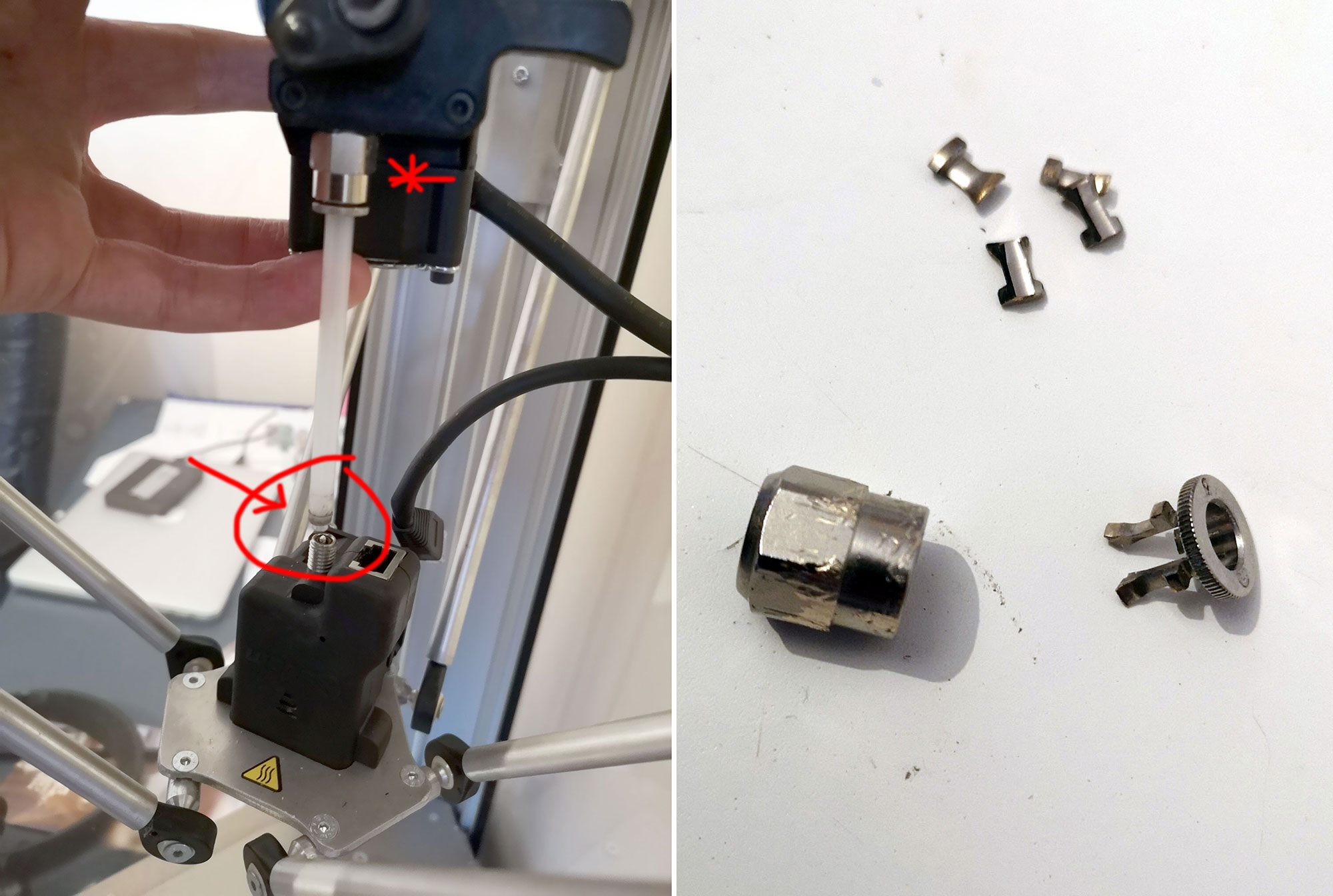 A metal conenctor has broken off that connects the plastic tube between the motor and extruder head. I dont know what it is called, can anyone ID it for me or even better could you please let me know where I can get a replacement please ?