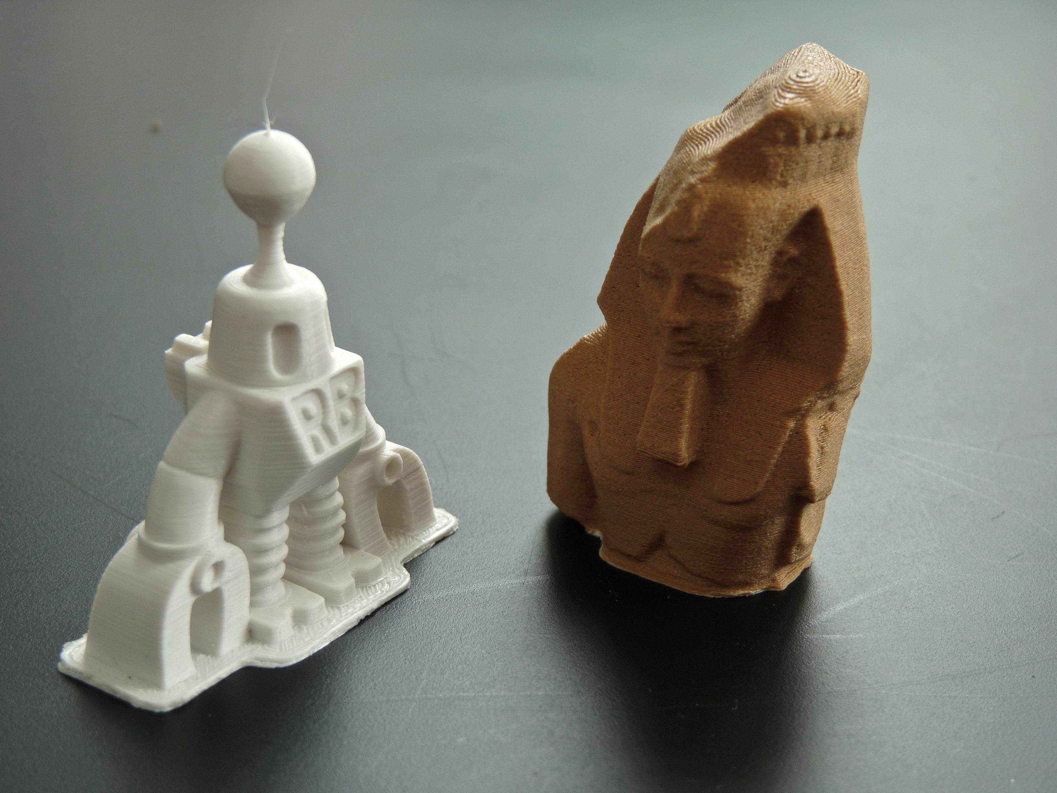 PLA and Polywood print on a CelRobox. Standard quality. 195/210°C, Polywood print with slightly reduced speed.